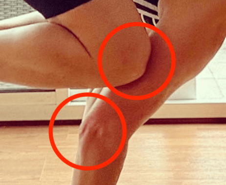 It’s worth noting that when the knees are placed higher up the arms the bottom may need to stay higher due to flexibility and other anatomical reasons. You can see in the version below, my knees are placed lower, my elbows are slightly more bent and my bottom is lower.